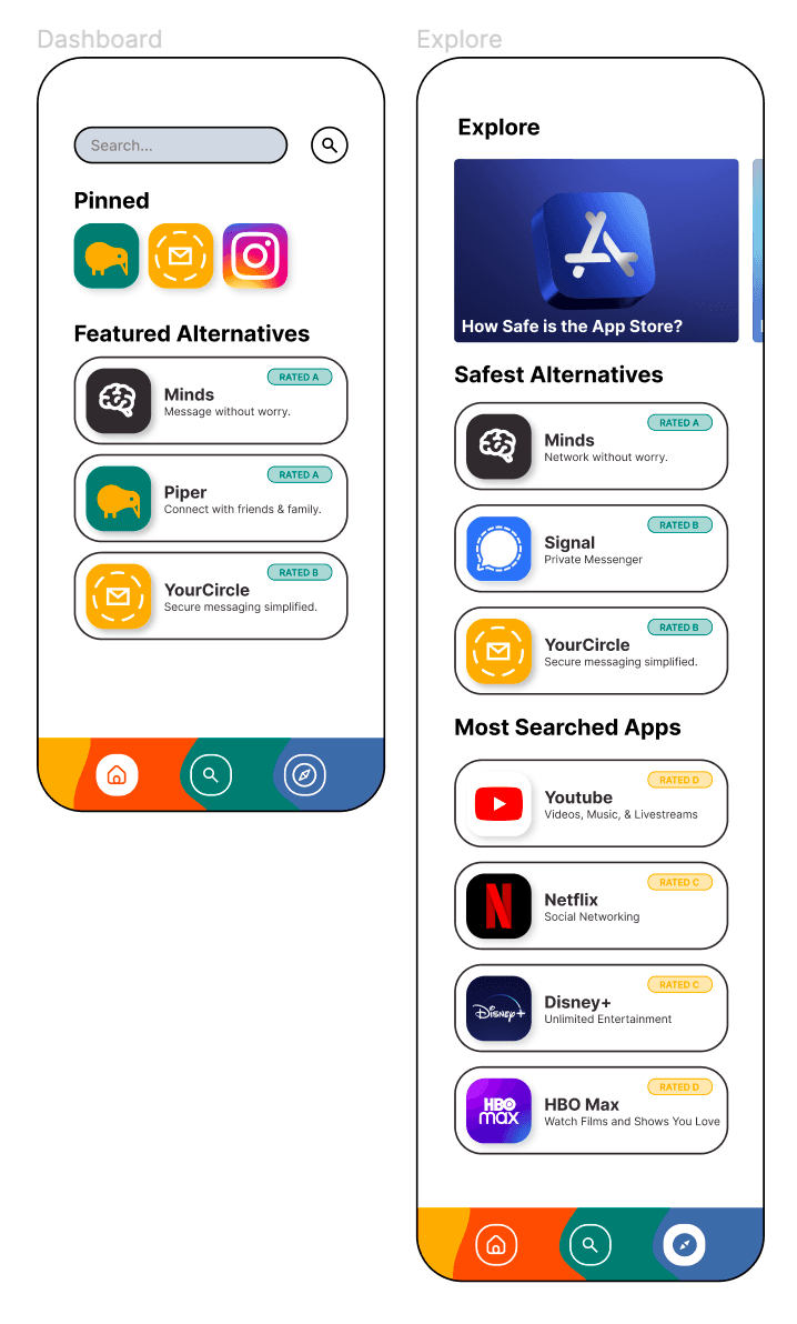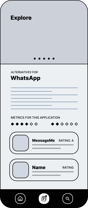 Our solution is a simple app that focuses on educating consumers about how certain applications manage their data through digital education and recommendations. Summary terms of service, a ranking system based on ethical objectives, user and official reviews, recommendations for related programs, and more will be available.