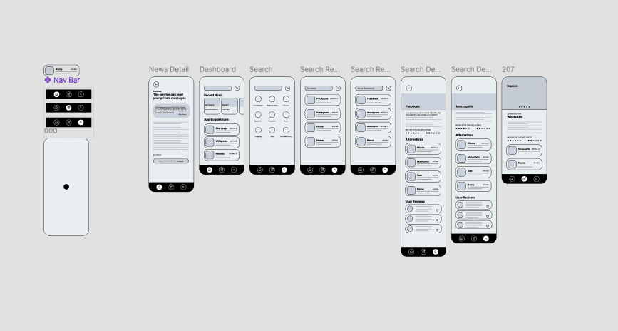 Created initial sketches based off research and developed low fidelity wireframes and component library for iterations.