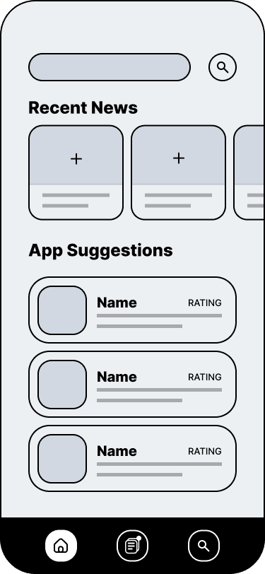 Eliminated redundancy between home page and explore page and added a pinned feature to replace the news section. Incorporated specific metrics with individual ratings and news excerpts. Incorporated news section into main explore page and displayed featured application categories.